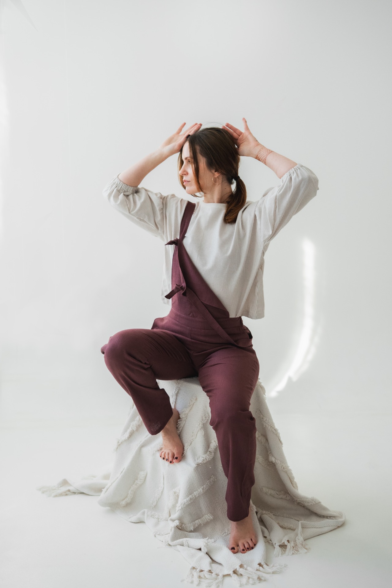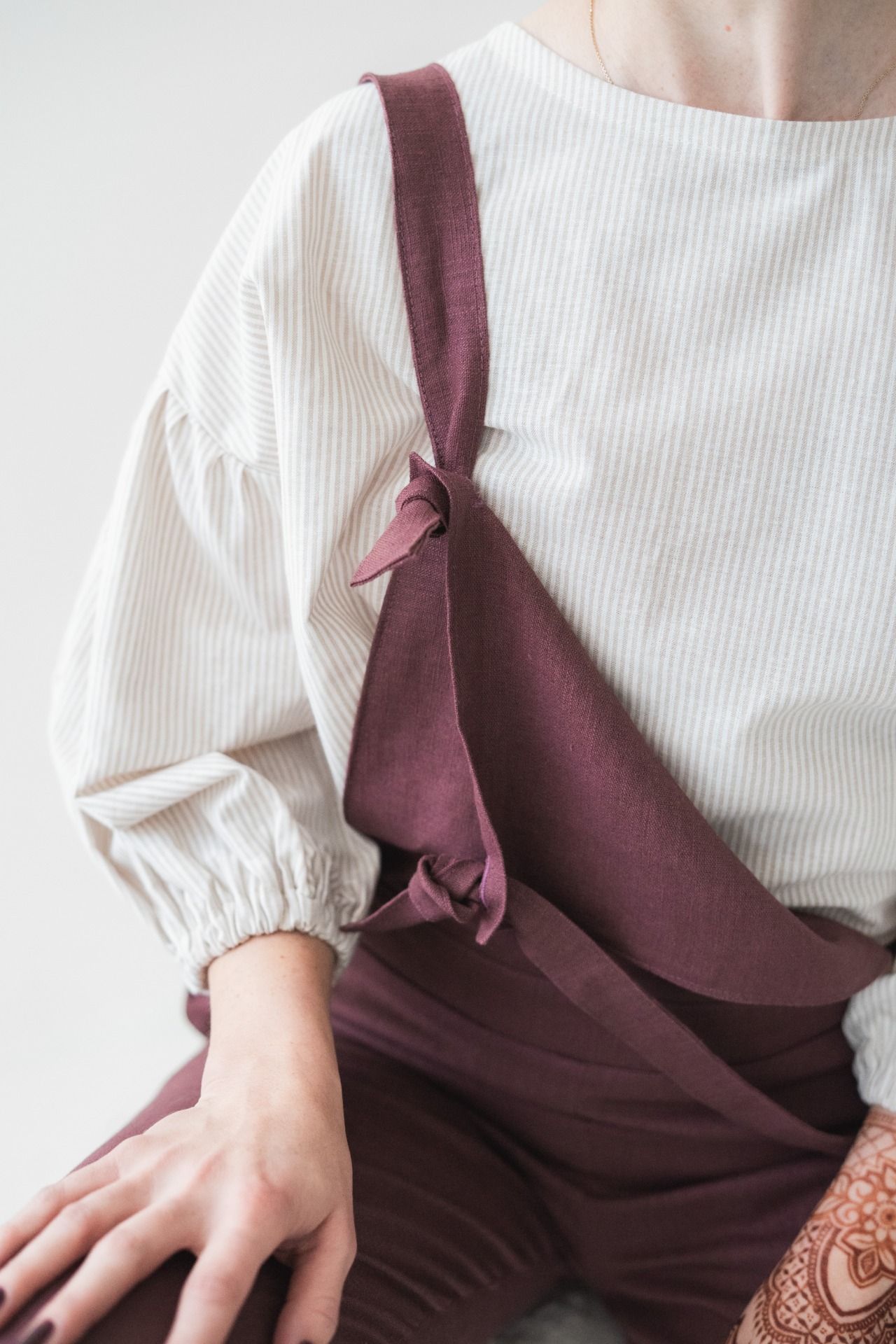 Cleo je kvalitní dámský overal z lněné směsi a bavlny, který vydrží roky. Overal má nastavitelnou délku popruhů - uvázáním, pružný zadní díl pasu, který se přizpůsobí postavě. A dvě super kapsy, které podtrhují jeho praktický charakter.