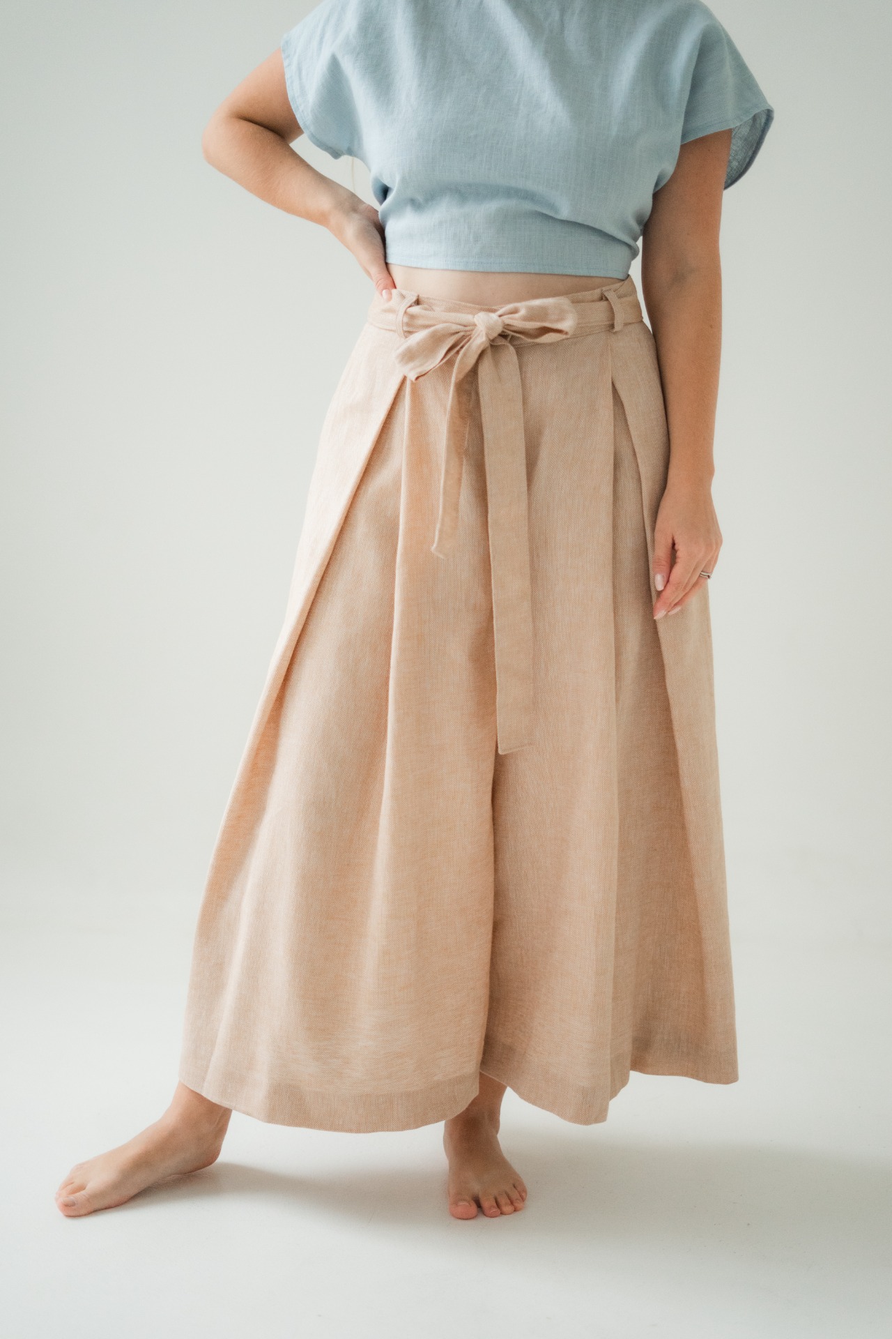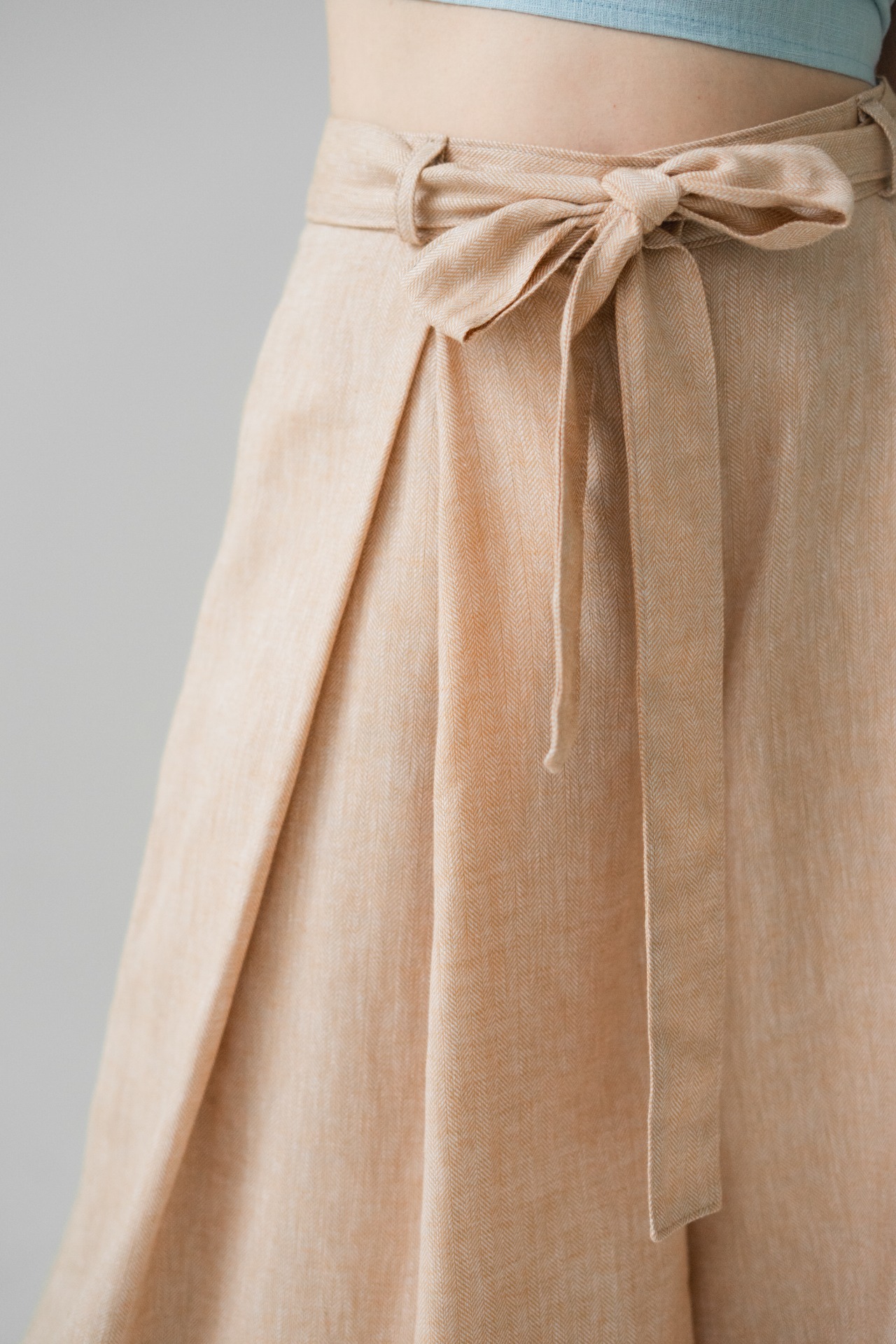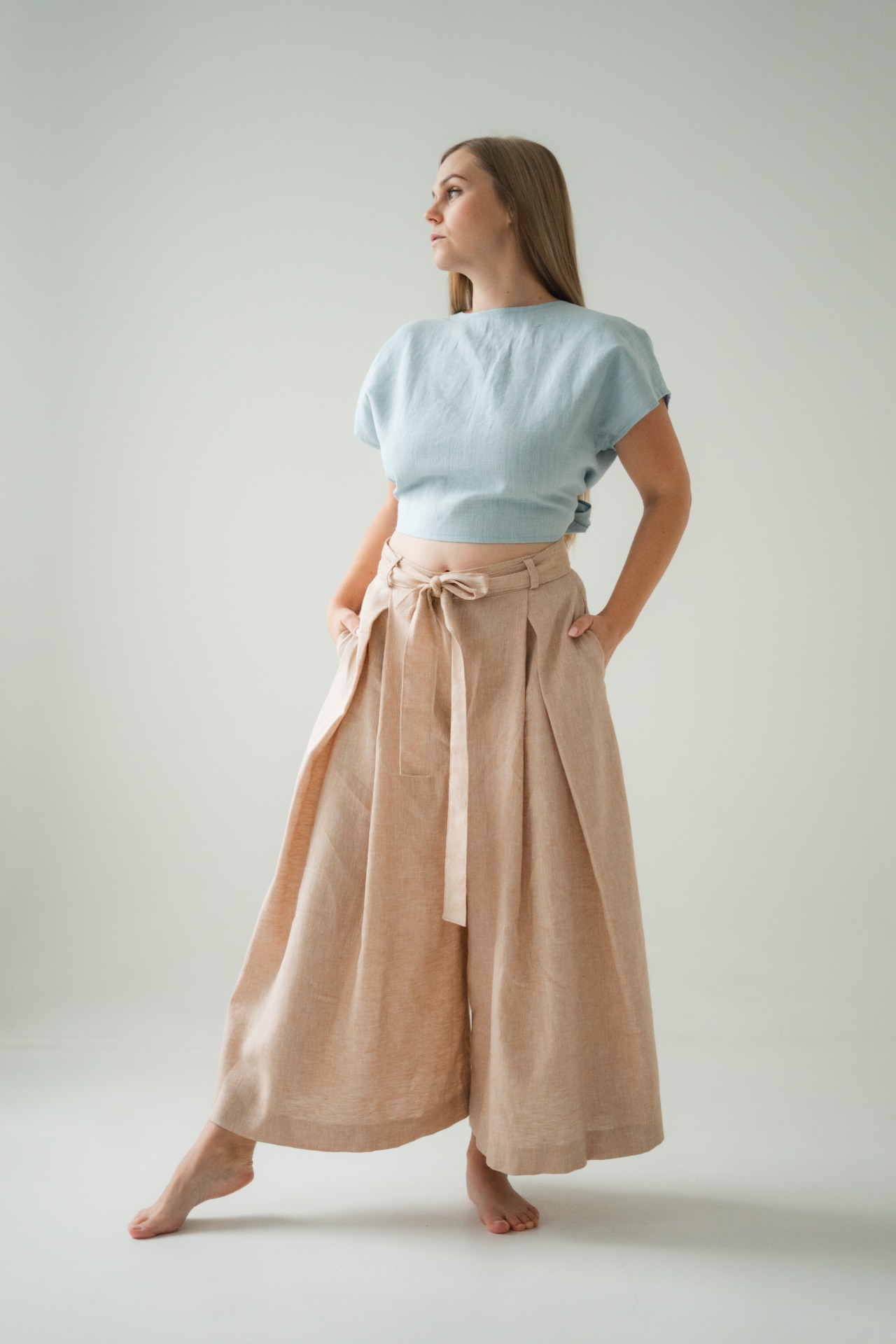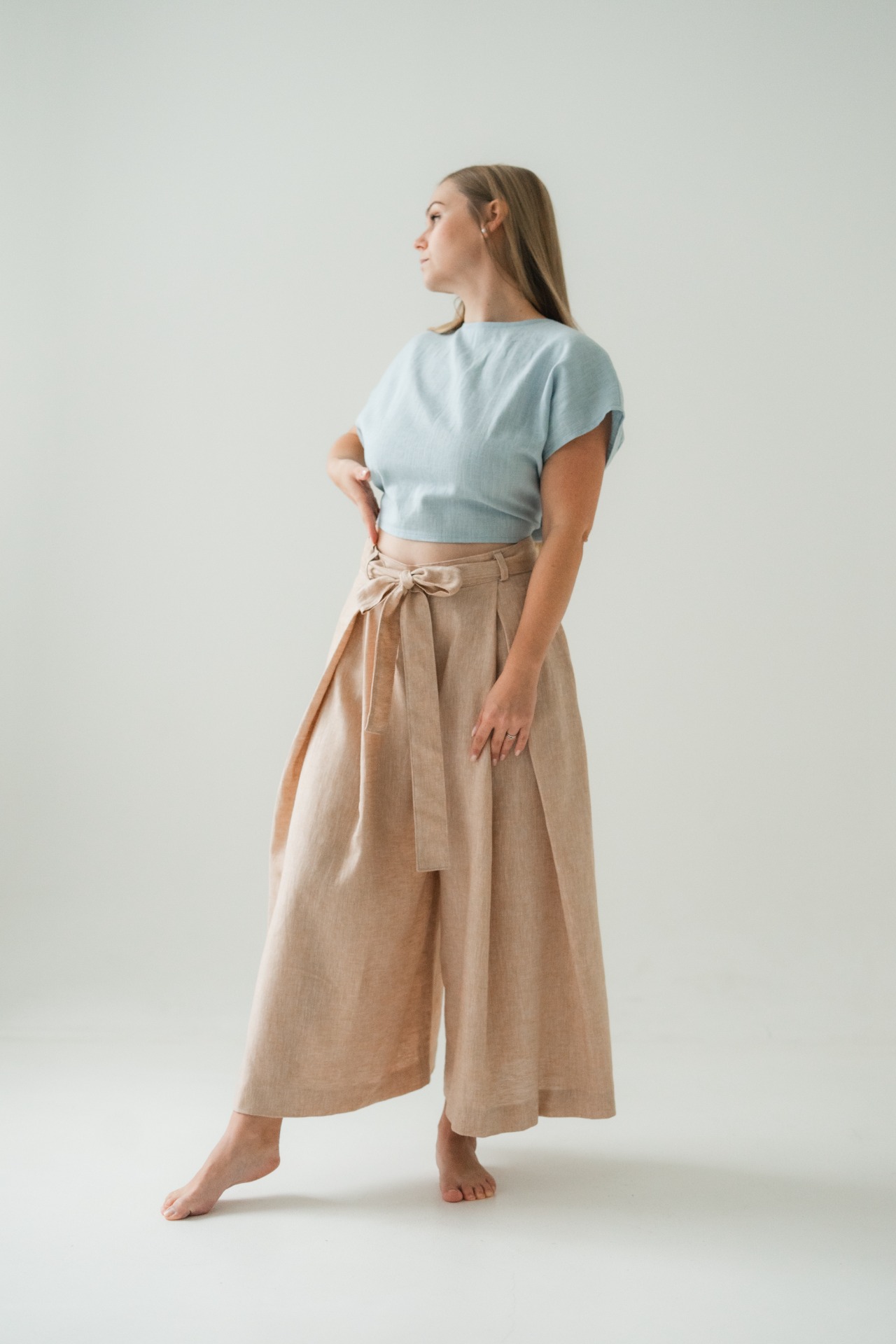 Lněné kalhoty Elori s extra širokými nohavicemi spojují nadčasový střih a absolutní pohodlí. Hladký spád nohavic a vysoký pas lichotí postavě. Ušité jsou ze směsi lnu a bavlny.