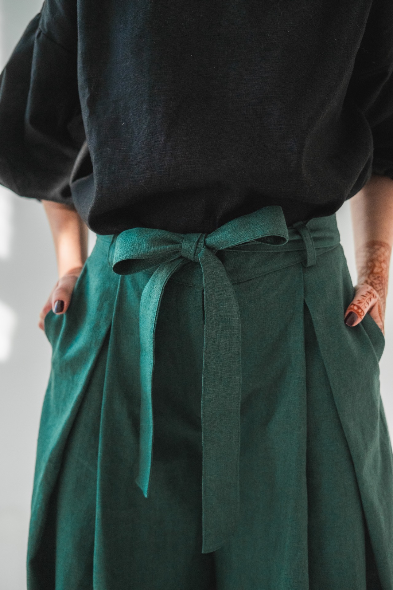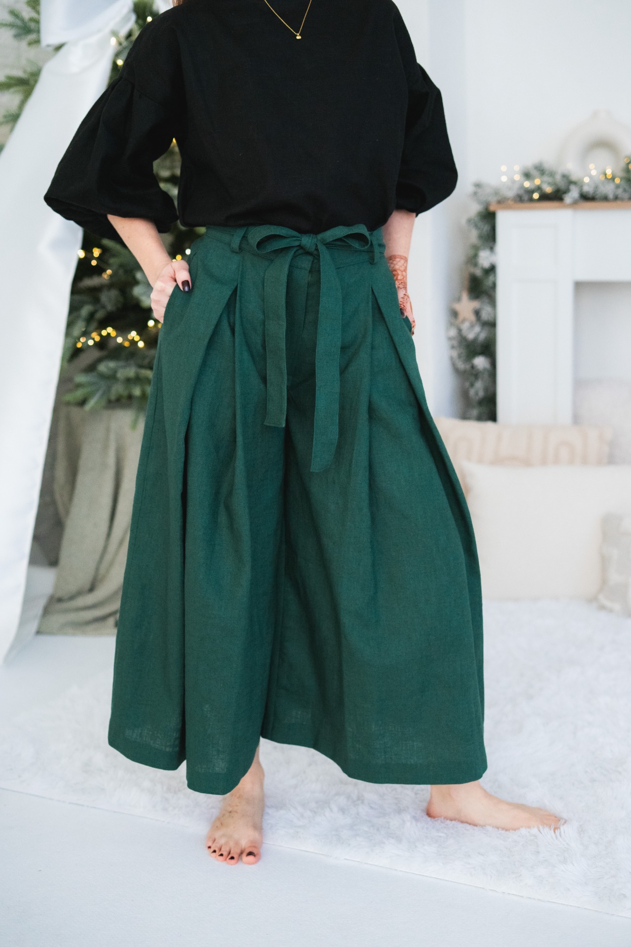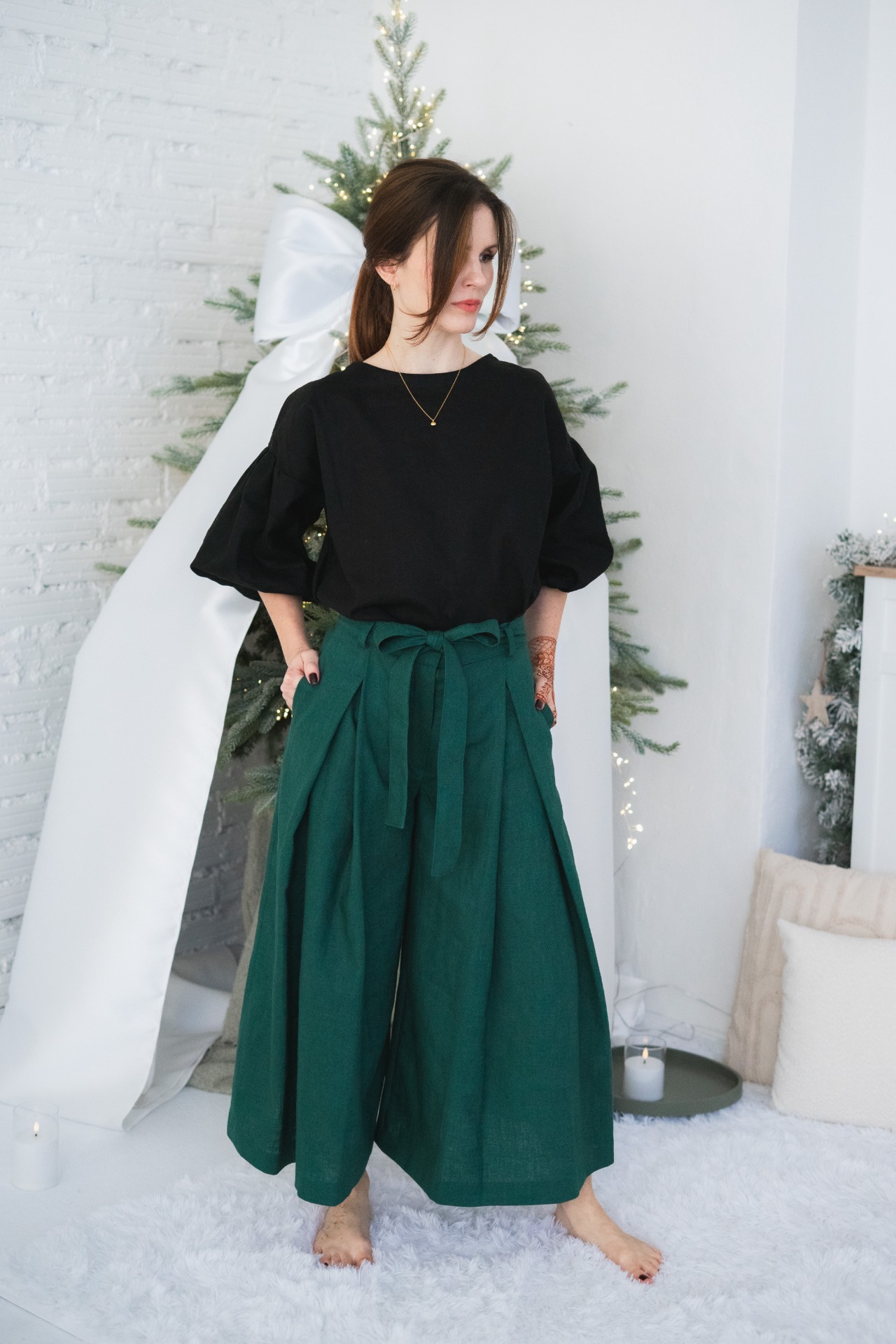 Lněné kalhoty Elori s extra širokými nohavicemi spojují nadčasový střih a absolutní pohodlí. Hladký spád nohavic a vysoký pas lichotí postavě. Ušité jsou ze směsi lnu a bavlny, proto se neděste, že je nový kousek trochu tvrdší, je to běžné, len po vyprání změkne.