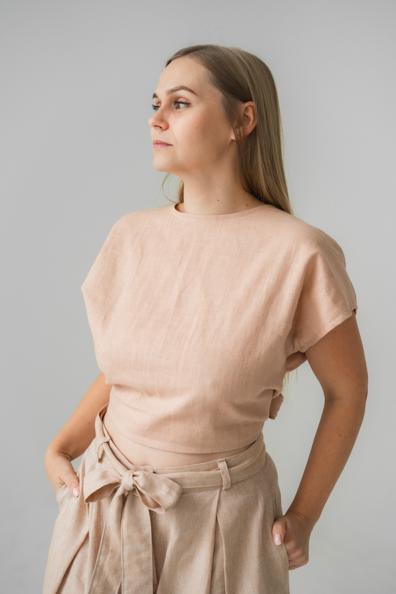 Lněný zavinovací top LANA se snadno přizpůsobí postavě a působí ženským dojmem. Má spadlá ramena a dostatek prostoru pro pohyb. Díky přírodnímu materiálu je prodyšný, příjemný na nošení a vhodný i pro citlivou pokožku.