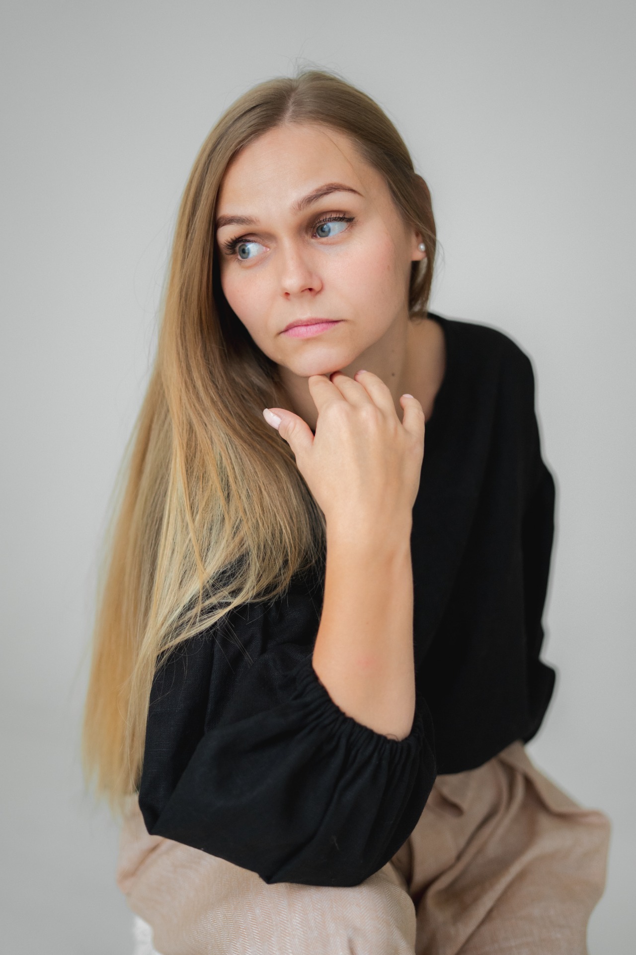 Modelka Denča běžně nosí velikosti XS - S, na sobě má top MEDA ve vel. XS/S