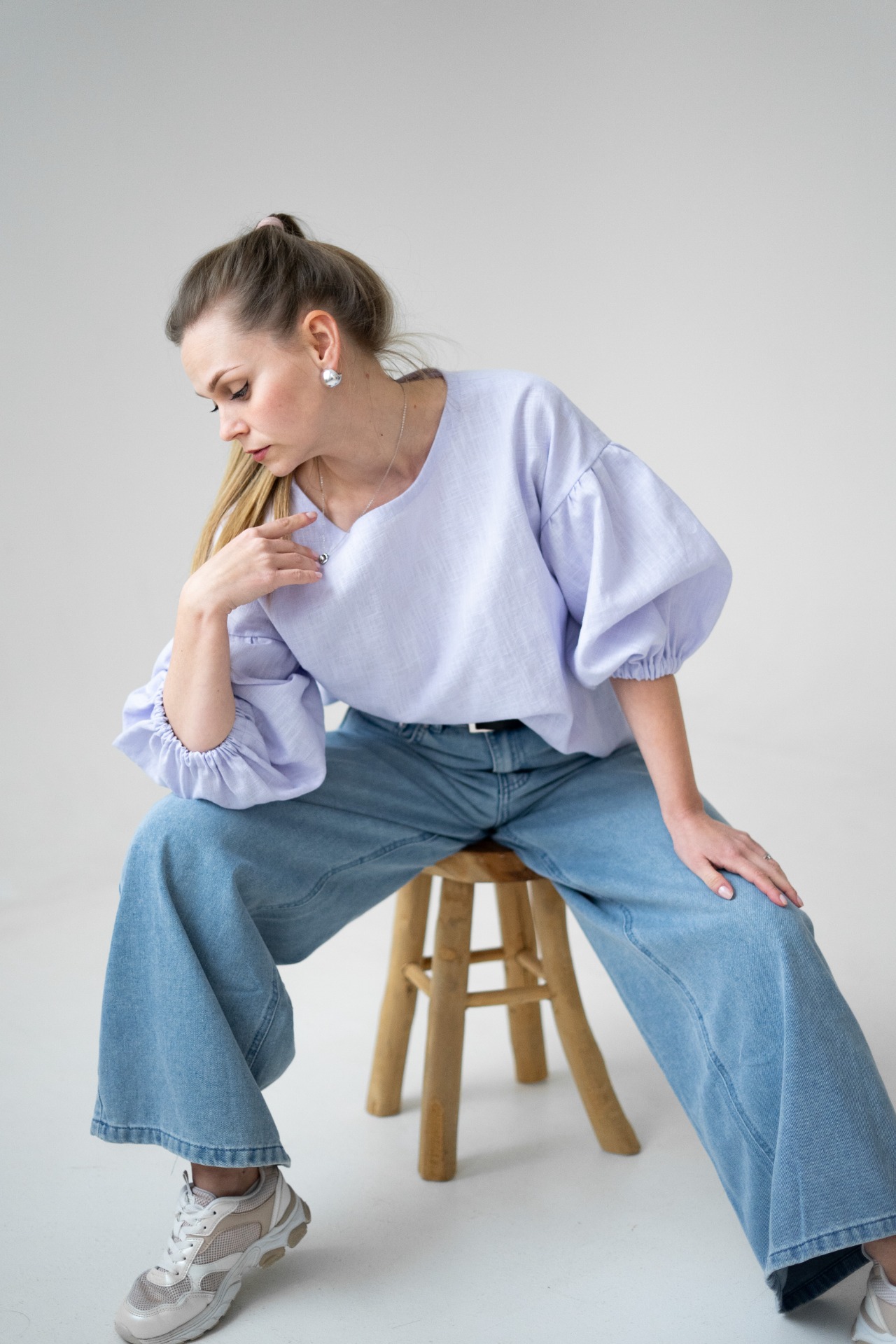 Halenka Meda je ušitá z kvalitní směsi lnu a bavlny, má volnější střih, balonové rukávy a krásný jemný proužkovaný vzor. Díky gumičkám na rukávech a pohodlnému střihu se hodí na každodenní nošení i svátečnější chvíle.
