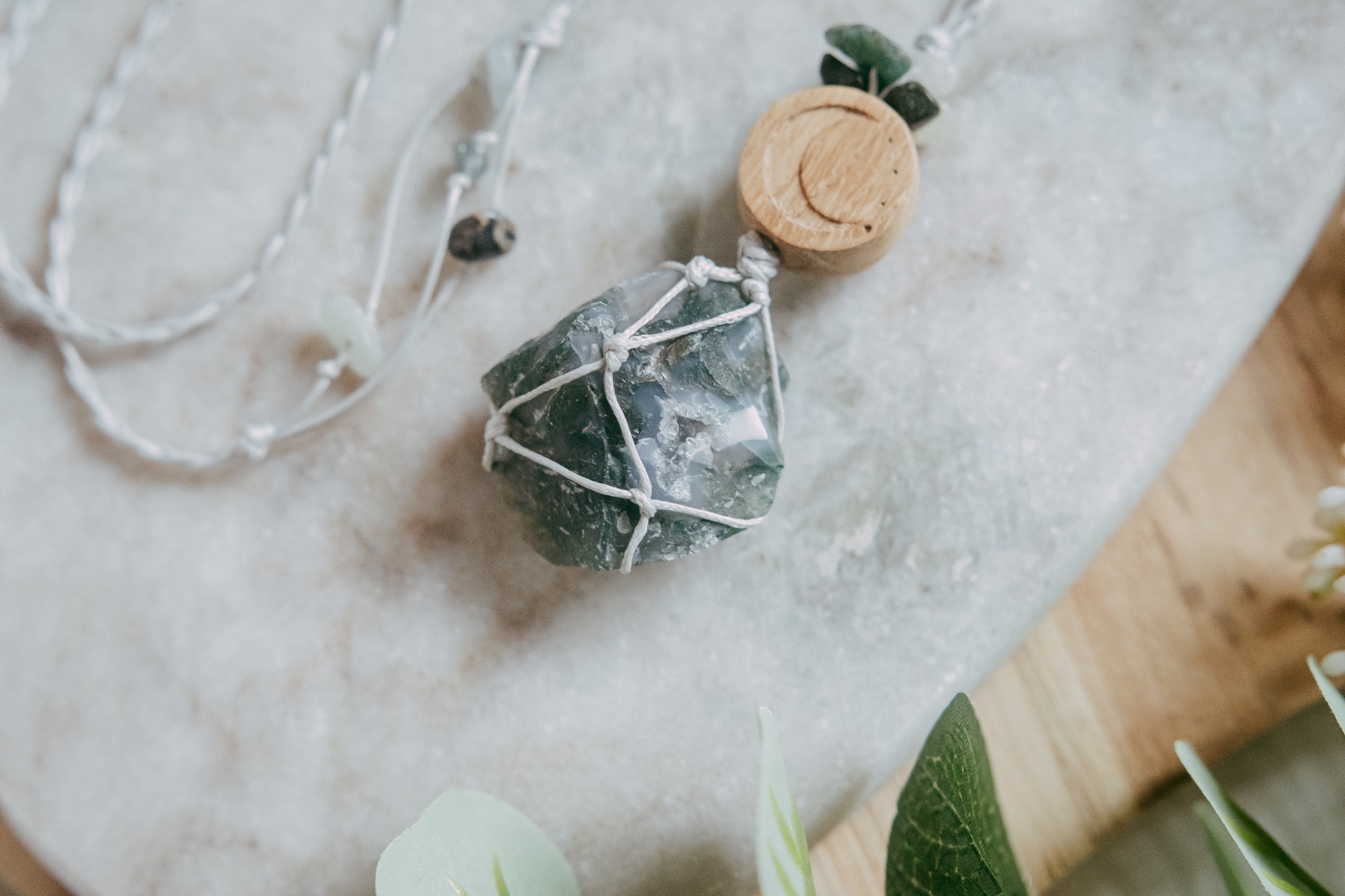 Náhrdelník z mechového achátu s drobnou druzičkou je šperk, který propojuje přirozenou energii kamene s unikátním, ručně vytvořeným akcentem. Každý kousek je originál – mechový achát působí zemitou, uklidňující energií, zatímco malá druzička dodává náhrdelníku jiskru a osobitý charakter.