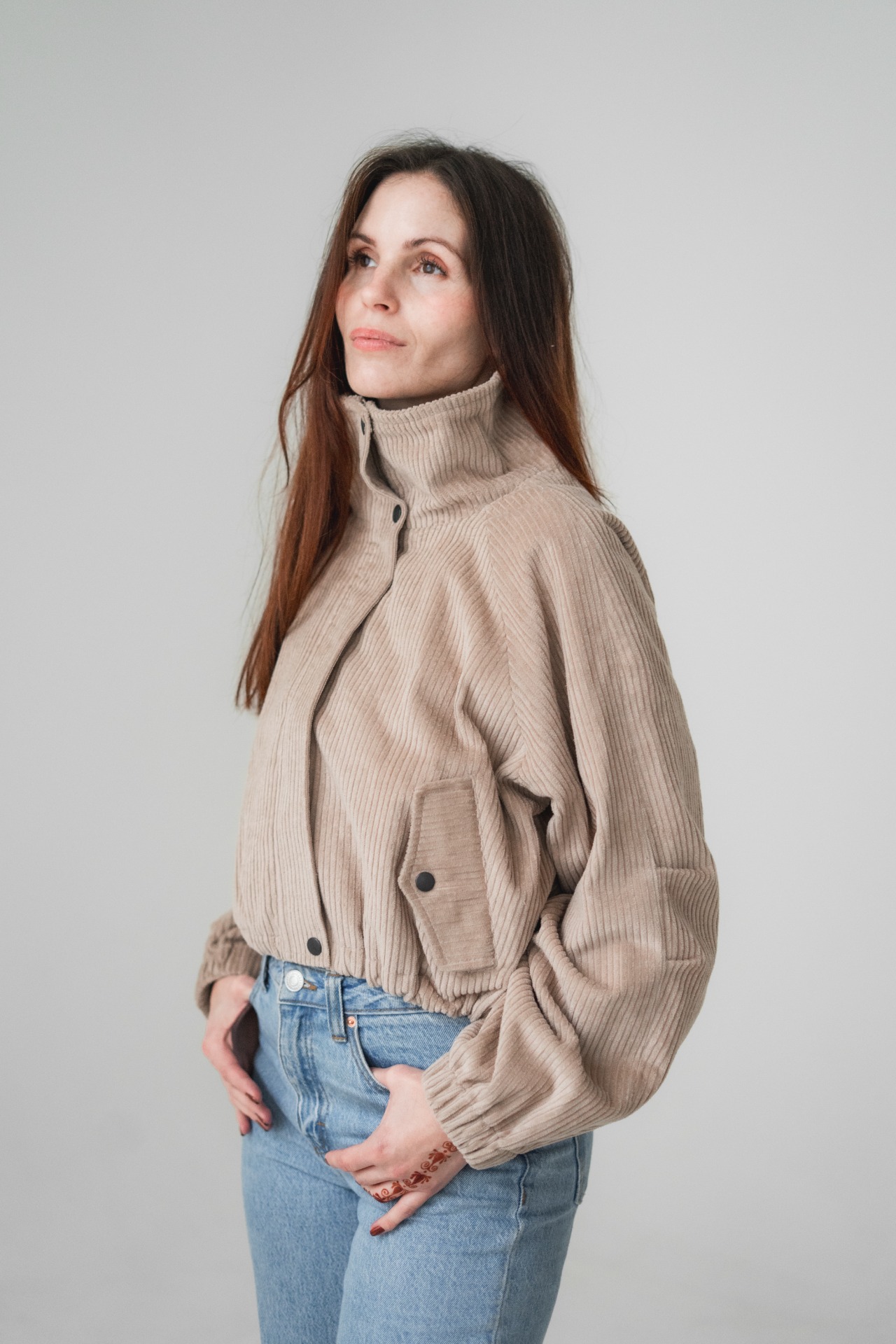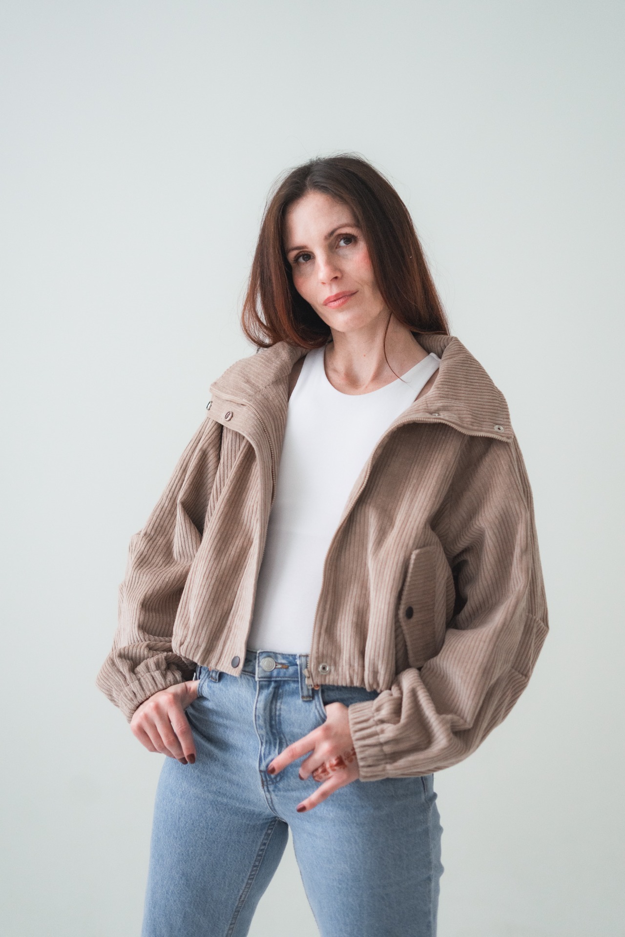 Naše hot novinka je přesně ten kousek, po kterým sáhneš, když se den láme mezi teplem a chladem. Manžestrová bunda Nonna v "bomber střihu" tě obejme jako měkká přikrývka. Tuhle bundičku jsme opravdu vymazlili, a to je důvod proč si ji zamiluješ i ty. Kolem obvodu si ji totiž můžeš stáhnout tak moc, jak potřebuješ, nebo ji nechat úplně volně. Vnitřní flanelová podšívka, která sahá až do rukávů a vysoký stojáček kolem krku, ti dodají pocit tepla a klidu, i když kolem tebe bude foukat vítr a tančit listí. Je pohodlná a přitom stylová. Stačí ji zapnout a vyrazit.