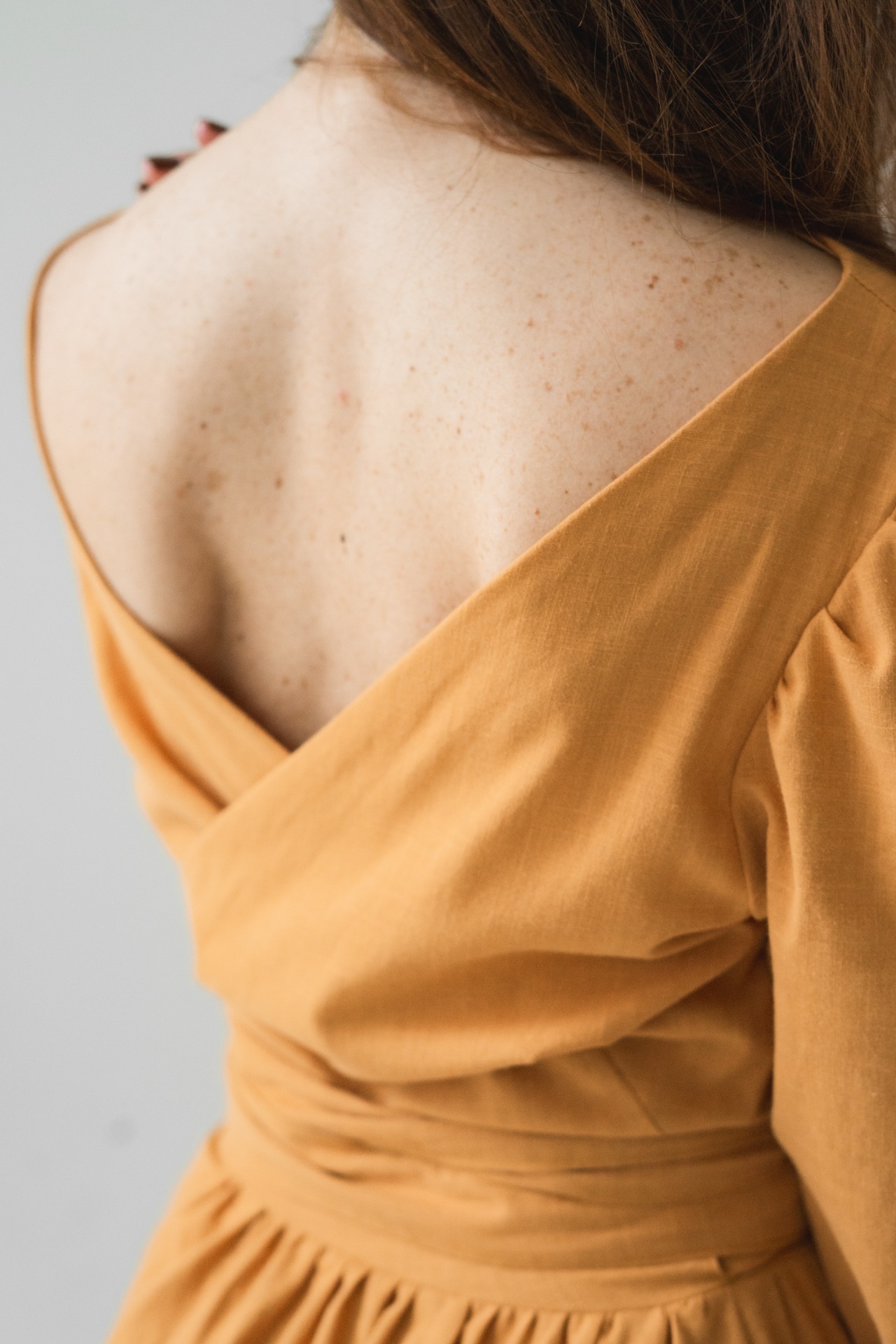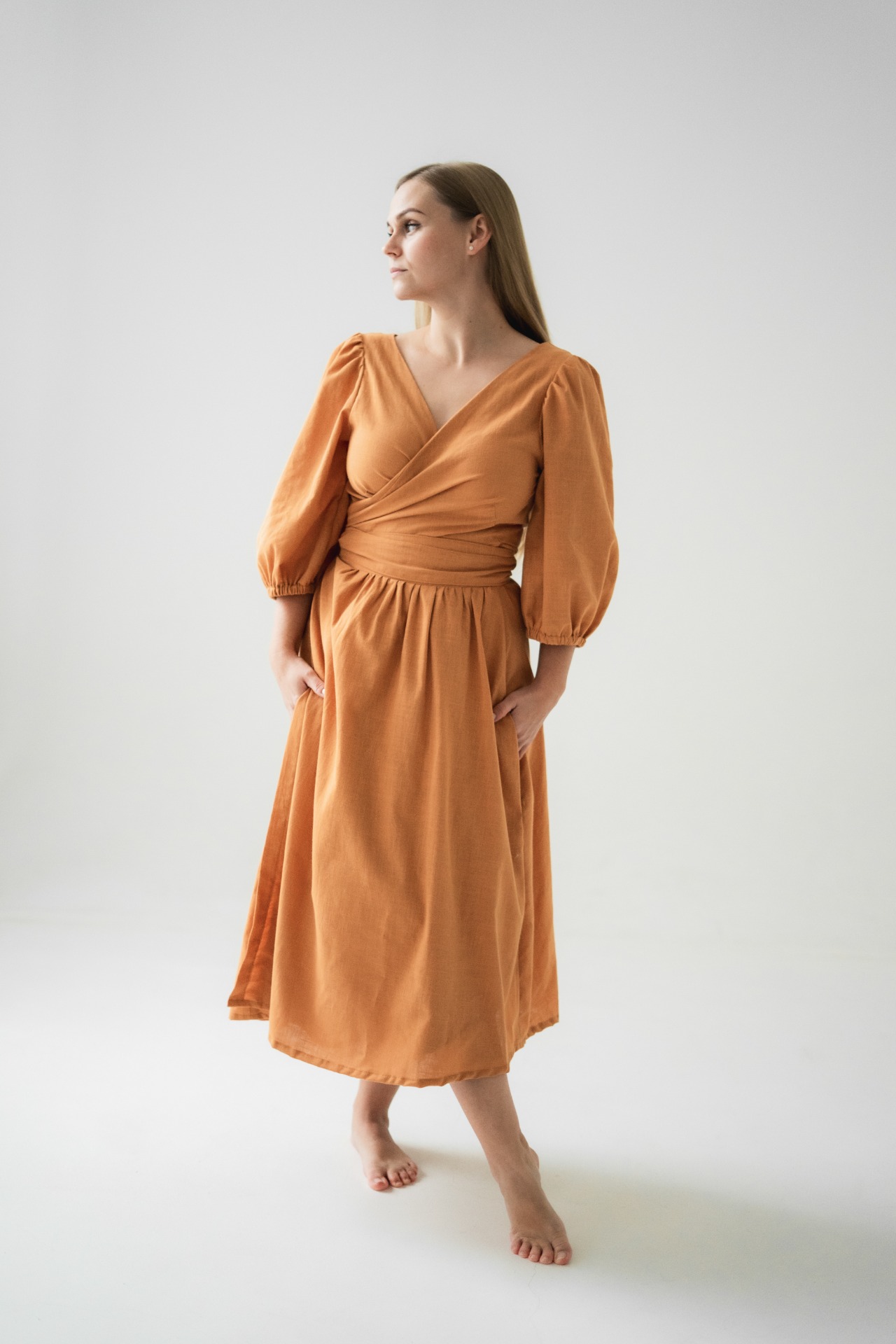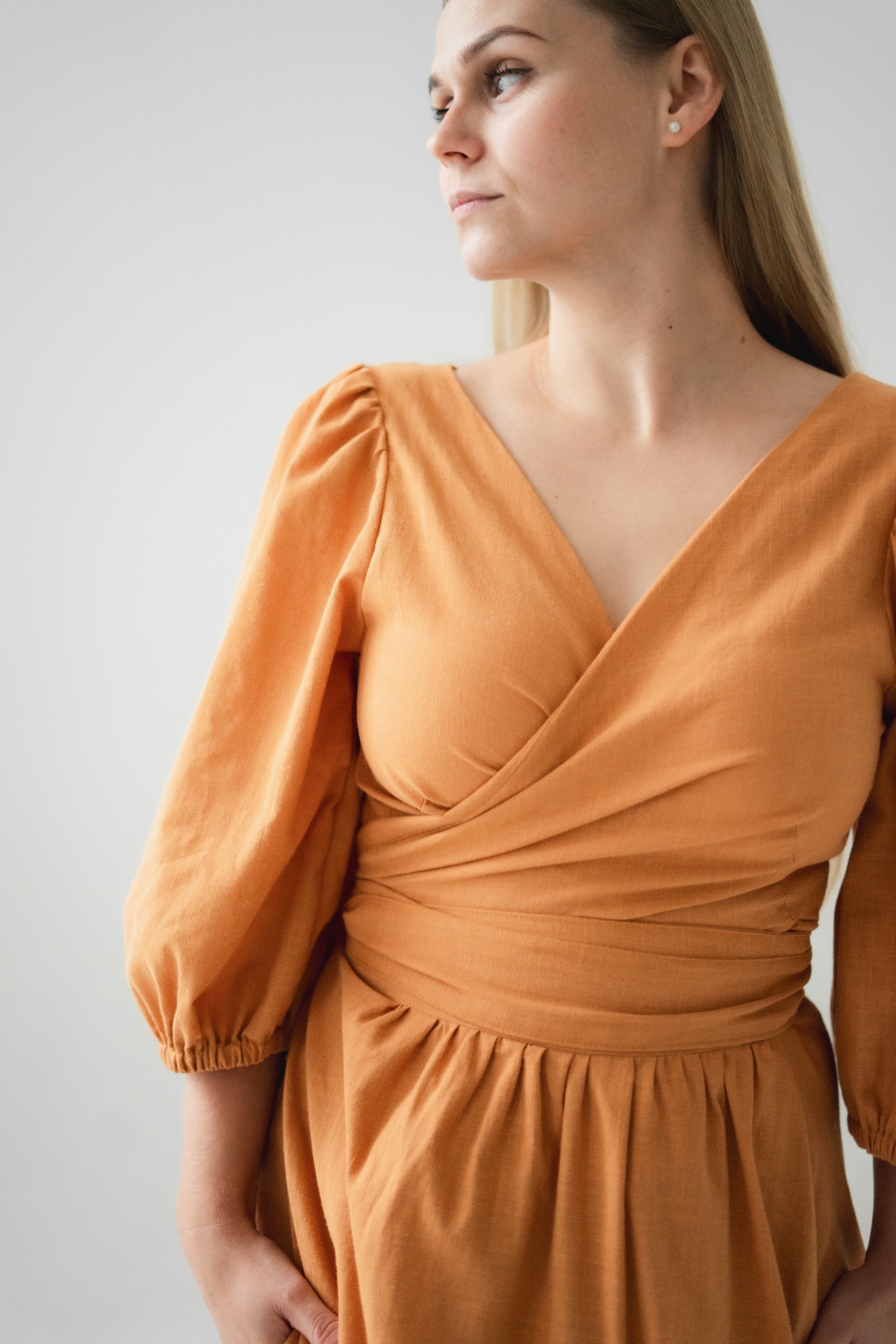 Šaty ODETTE se obtočí kolem tvého těla s lehkostí a nechají vyniknout tvůj přirozený šarm i křivky, bez přetvářky. Balonové rukávy jim dodávají vzdušnost, lehkosti i nadčasovost. Zavinovací způsob zase dodá jistotu, že je přizpůsobíš sama sobě. Jsou to šaty, které se dají nosit oboustranně. Výstřih na zádech nebo vepředu? Je to jen na tobě. My jen víme, že tyhle šaty budeš milovat, vytáhneš je na spoustu příležitostí i denní nošení. Jestli existují šaty pro každou postavu? Jsou to jednoznačně tyhle! Budeš si v nich připadat jedinečná, vše ostatní už řeknou za tebe.