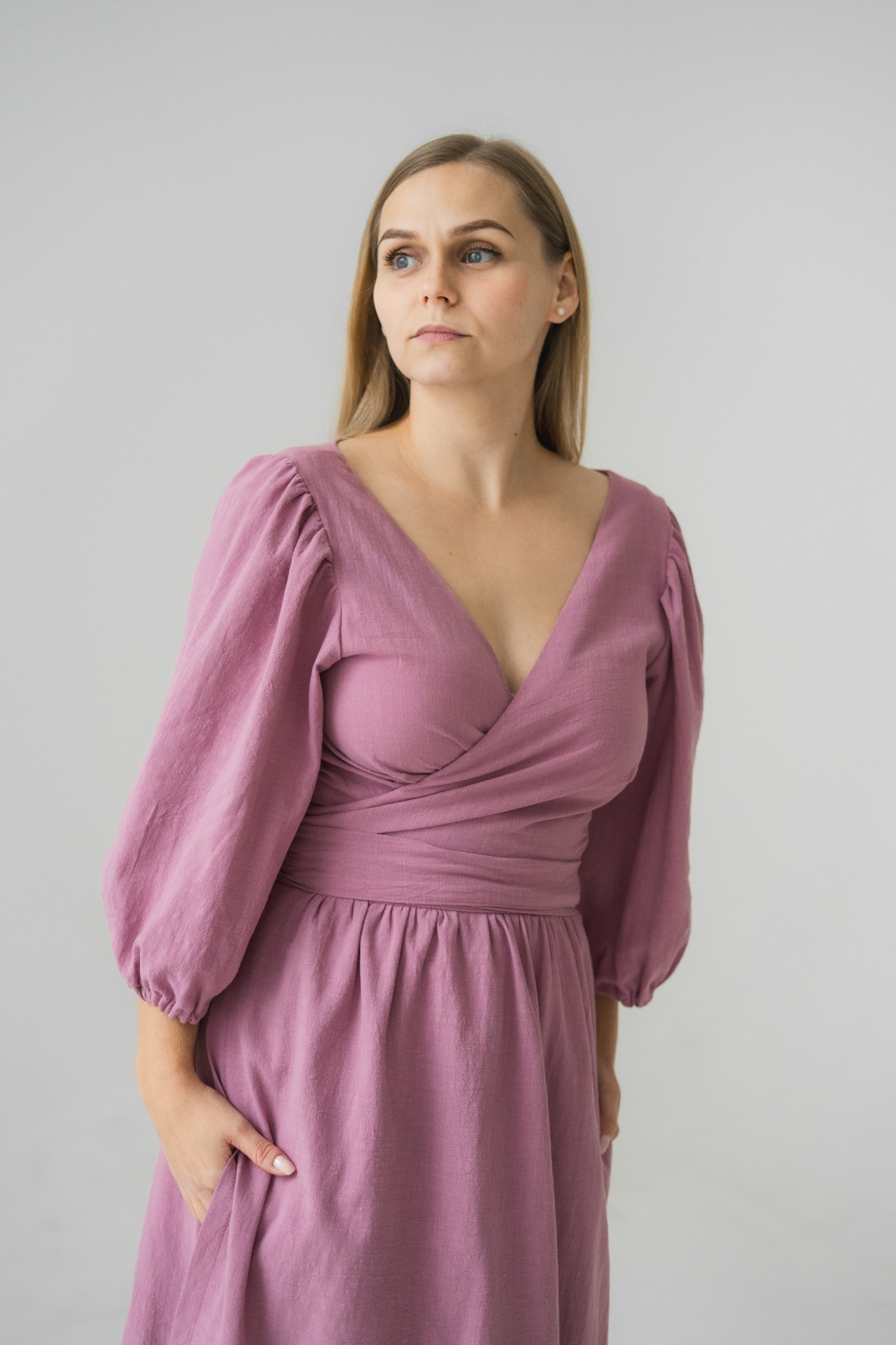 Zavinovací šaty Odette s balonovými rukávy kombinují nadčasový střih a ženskou jemnost. Díky oboustrannému provedení je to kousek 2v1. Mají praktické kapsy, vzdušný střih a možnost přizpůsobit se postavě.