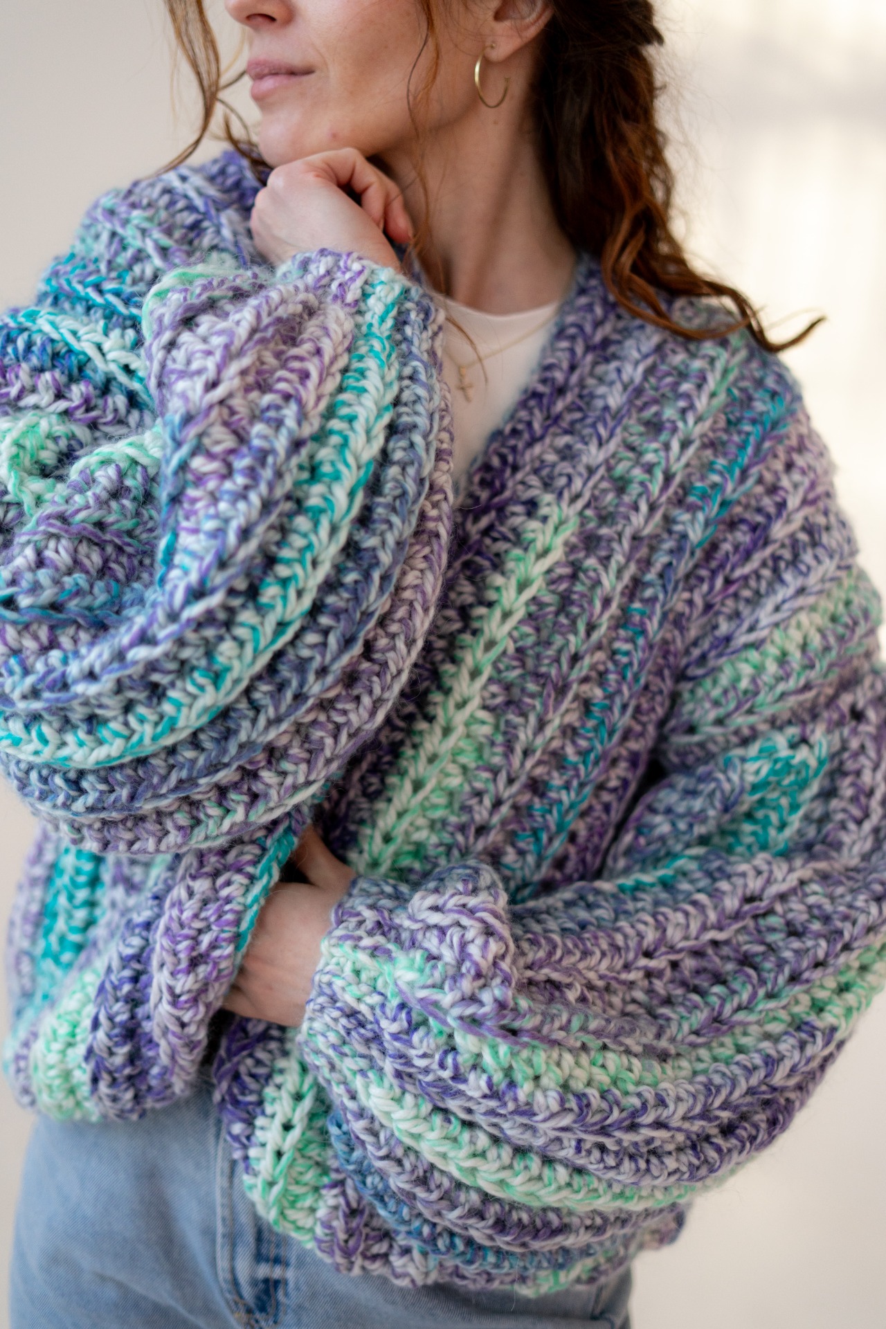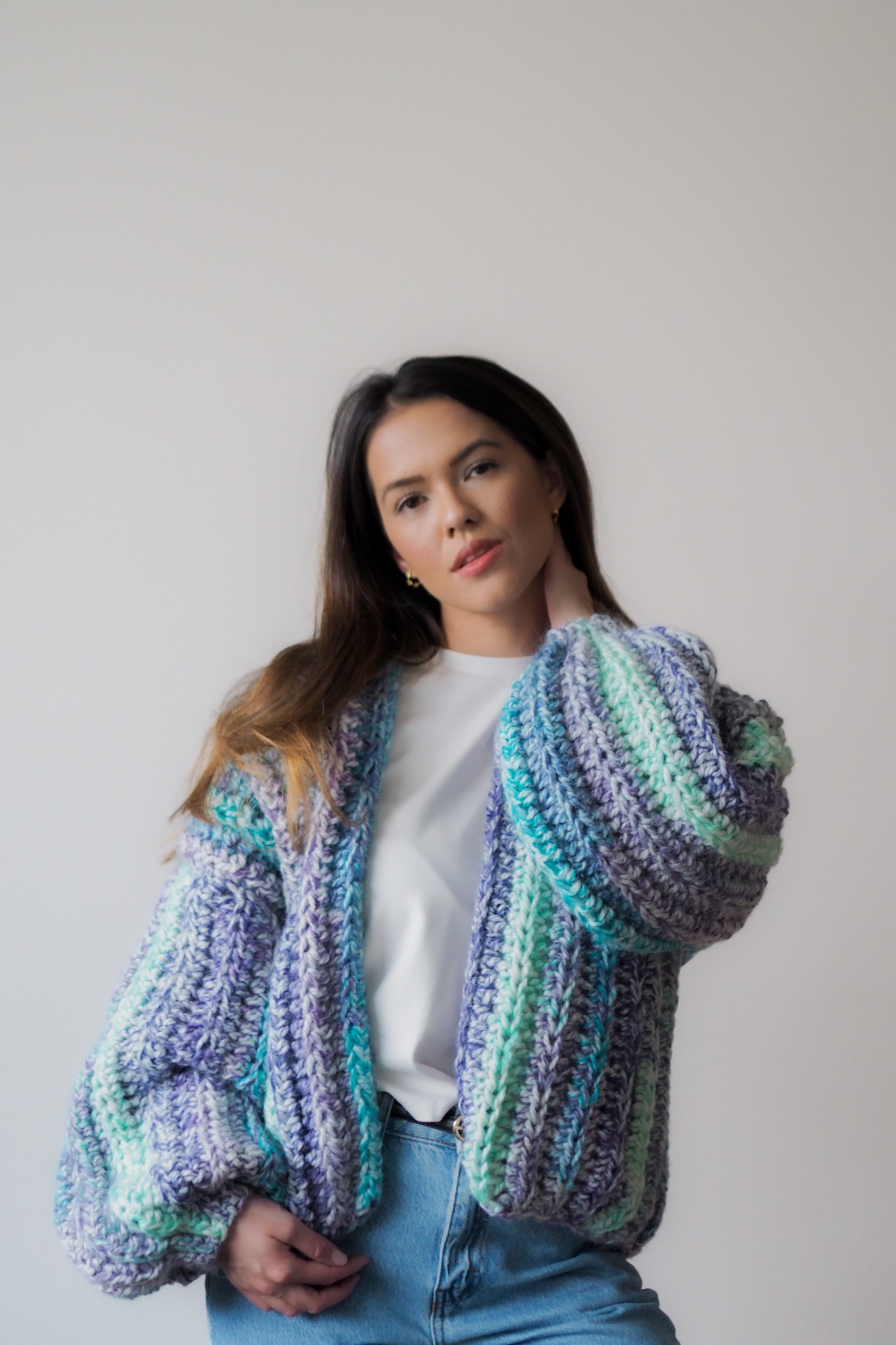 Ručně háčkovaný vlněný svetr je malý zázrak. Barevný, hravý, měkký...připomíná dětství, kdy bylo všechno možné. Balonové rukávy mu dávají ženskost, objem, zatímco barvy ti dodají odvahu zazářit i v obyčejný den.
