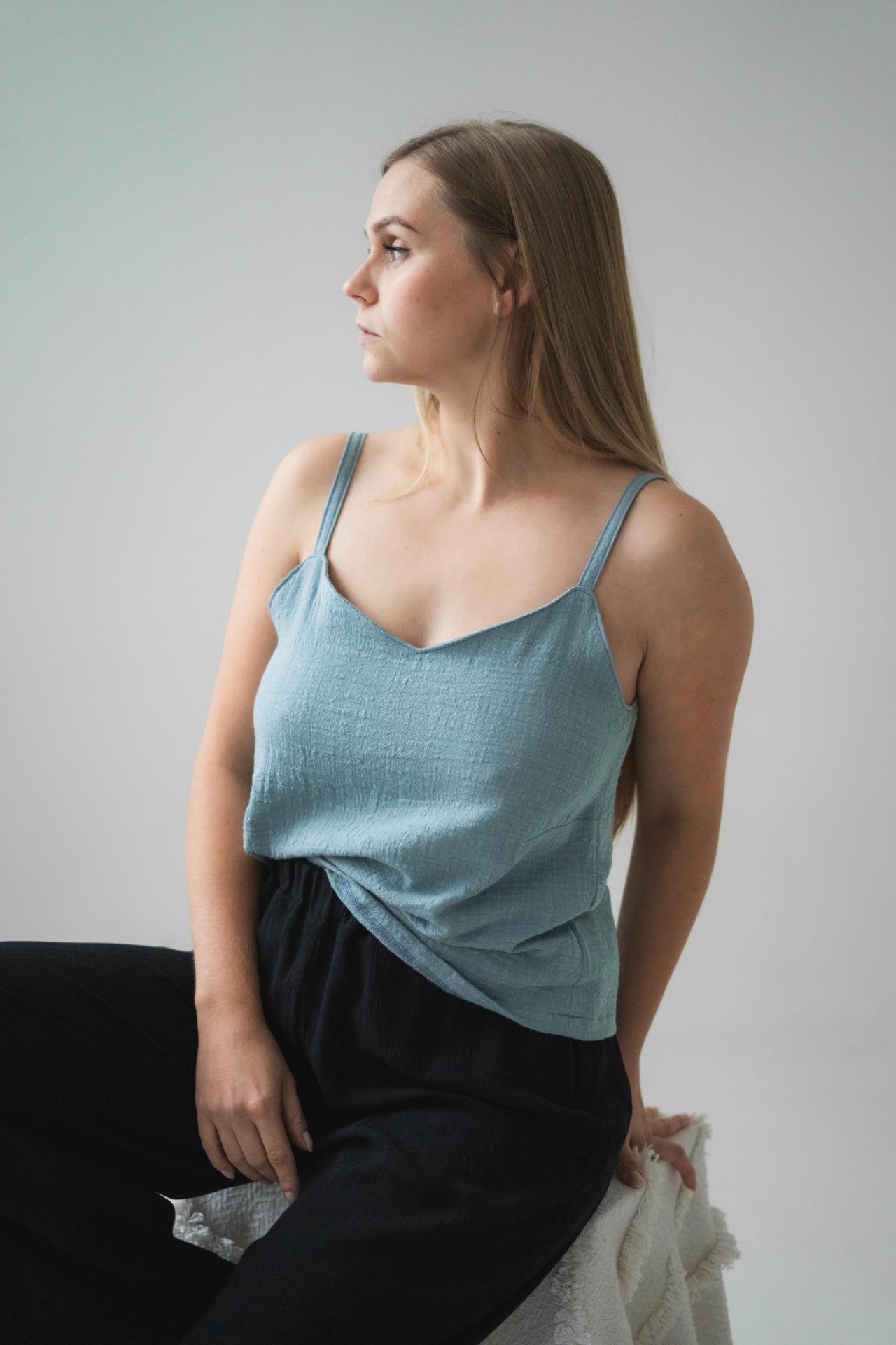 Top VENNA, je ušitý ze směsi lnu a viskózy, je lehký, vzdušný a nezradí tě ani v největším horku. Jako bonus má nastavitelná ramínka, takže je to kousek, který se zase o něco víc, přizpůsobí tobě.