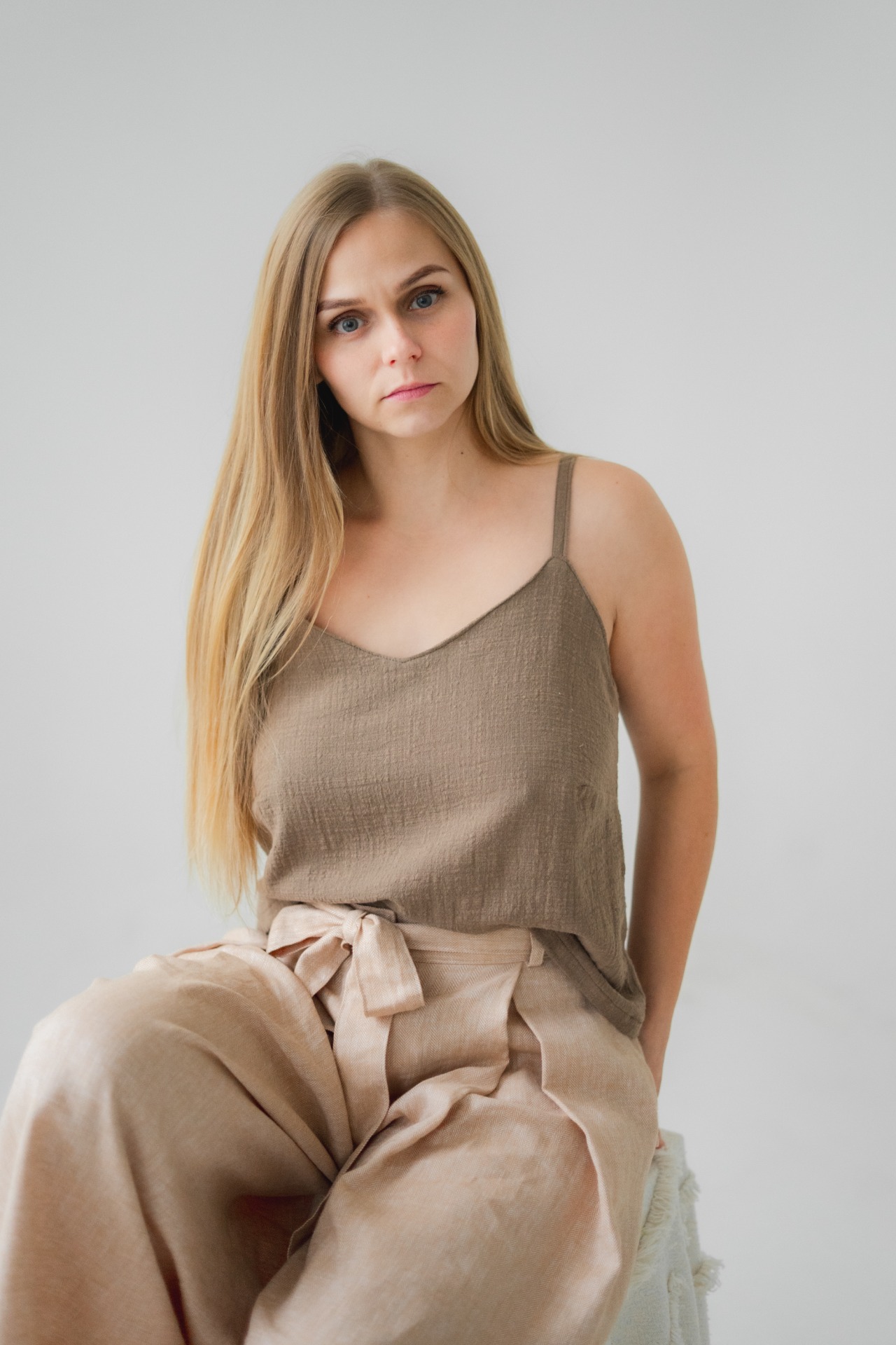 Top VENNA,  je ušitý ze směsi lnu a viskózy, je lehký, vzdušný a nezradí tě ani v největším horku.  Jako bonus má nastavitelná ramínka, takže je to kousek, který se zase o něco víc, přizpůsobí tobě.