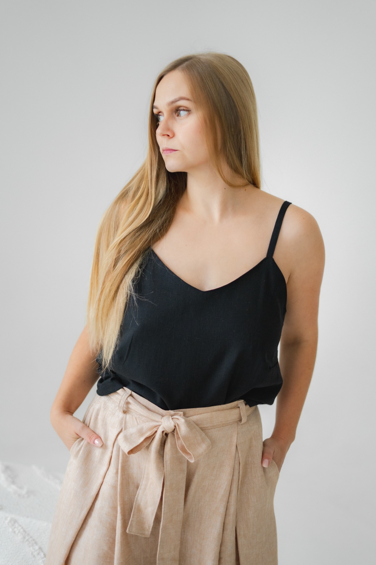 Top VENNA, je ušitý ze směsi lnu a viskózy, je lehký, vzdušný a nezradí tě ani v největším horku. Jako bonus má nastavitelná ramínka, takže je to kousek, který se zase o něco víc, přizpůsobí tobě.