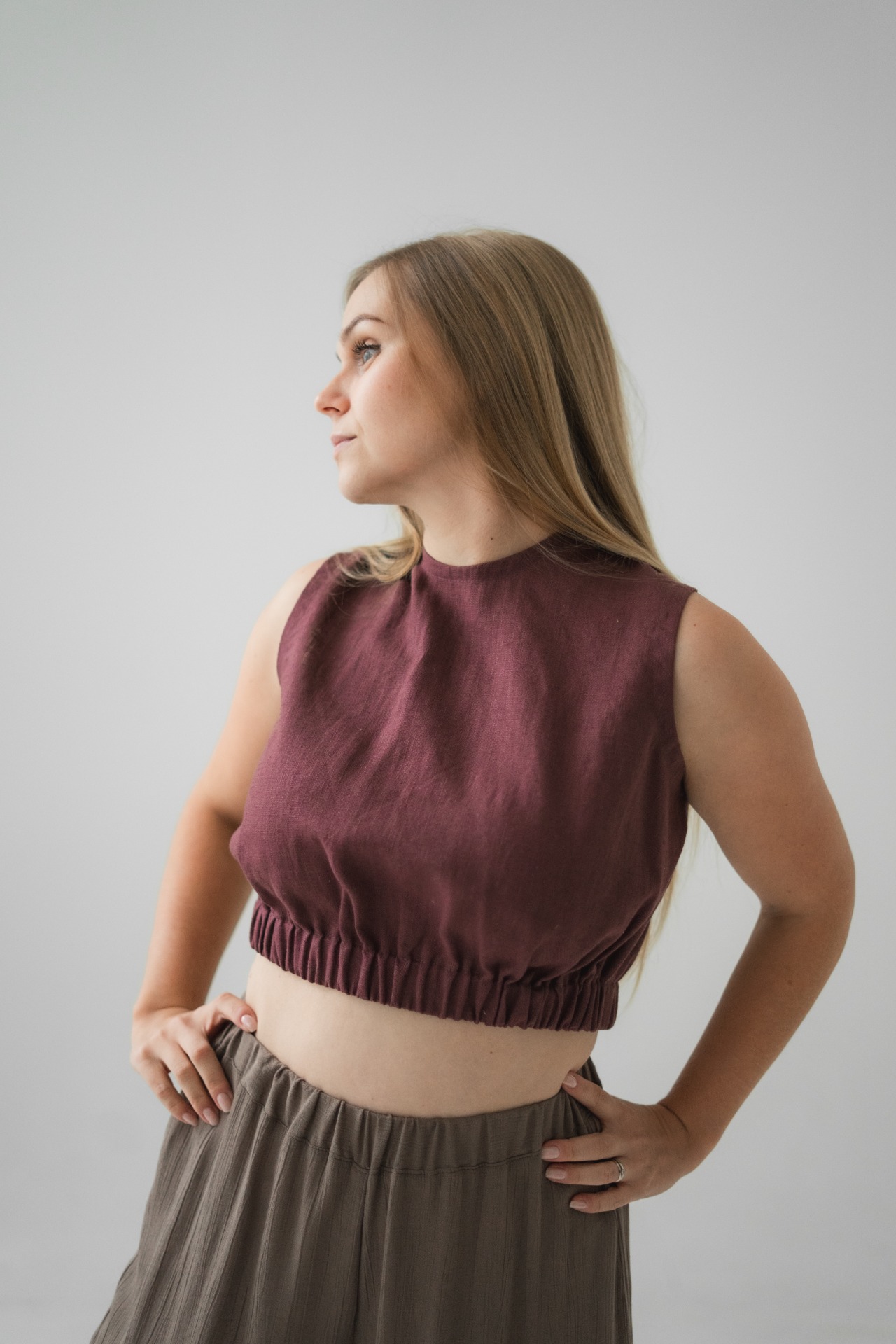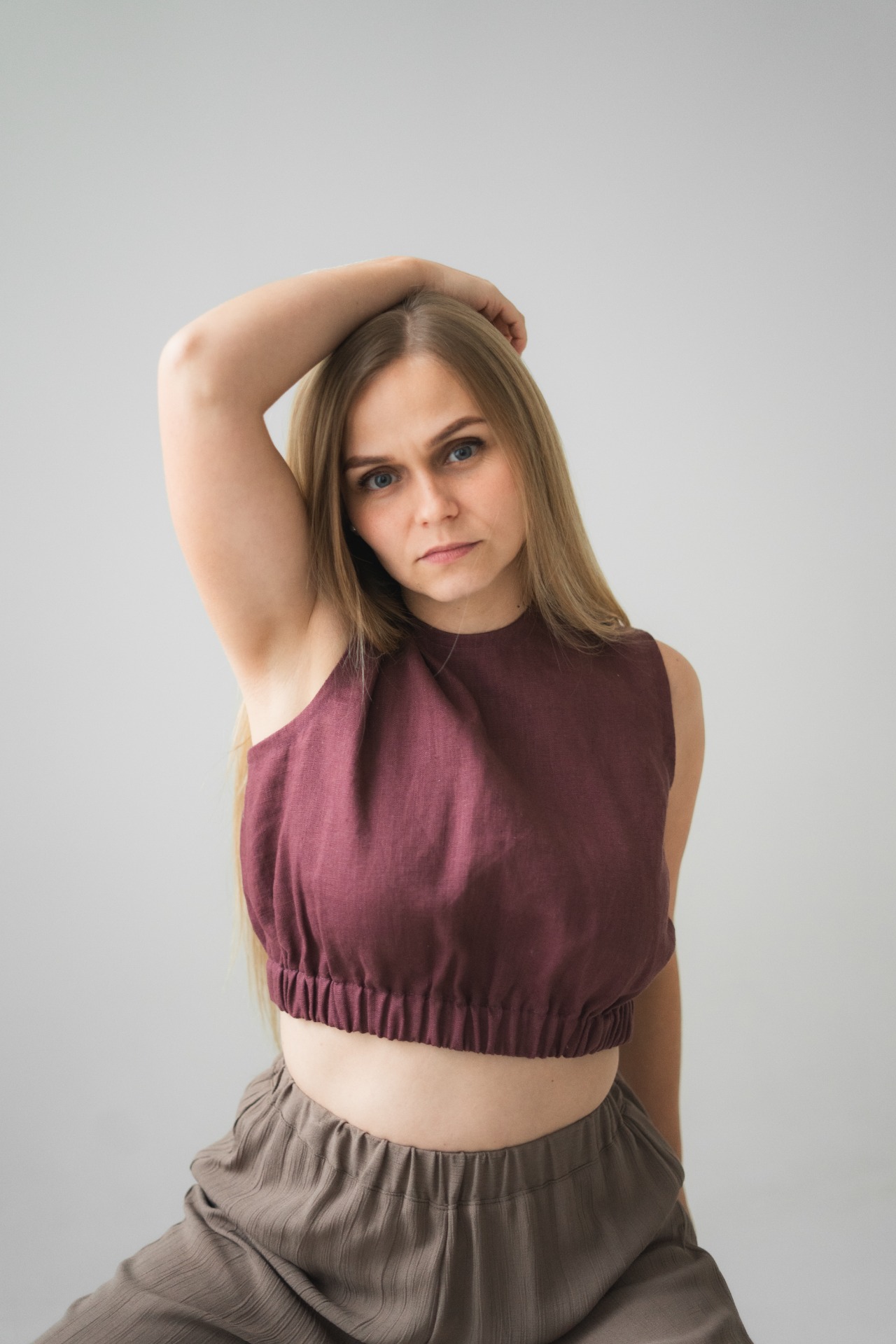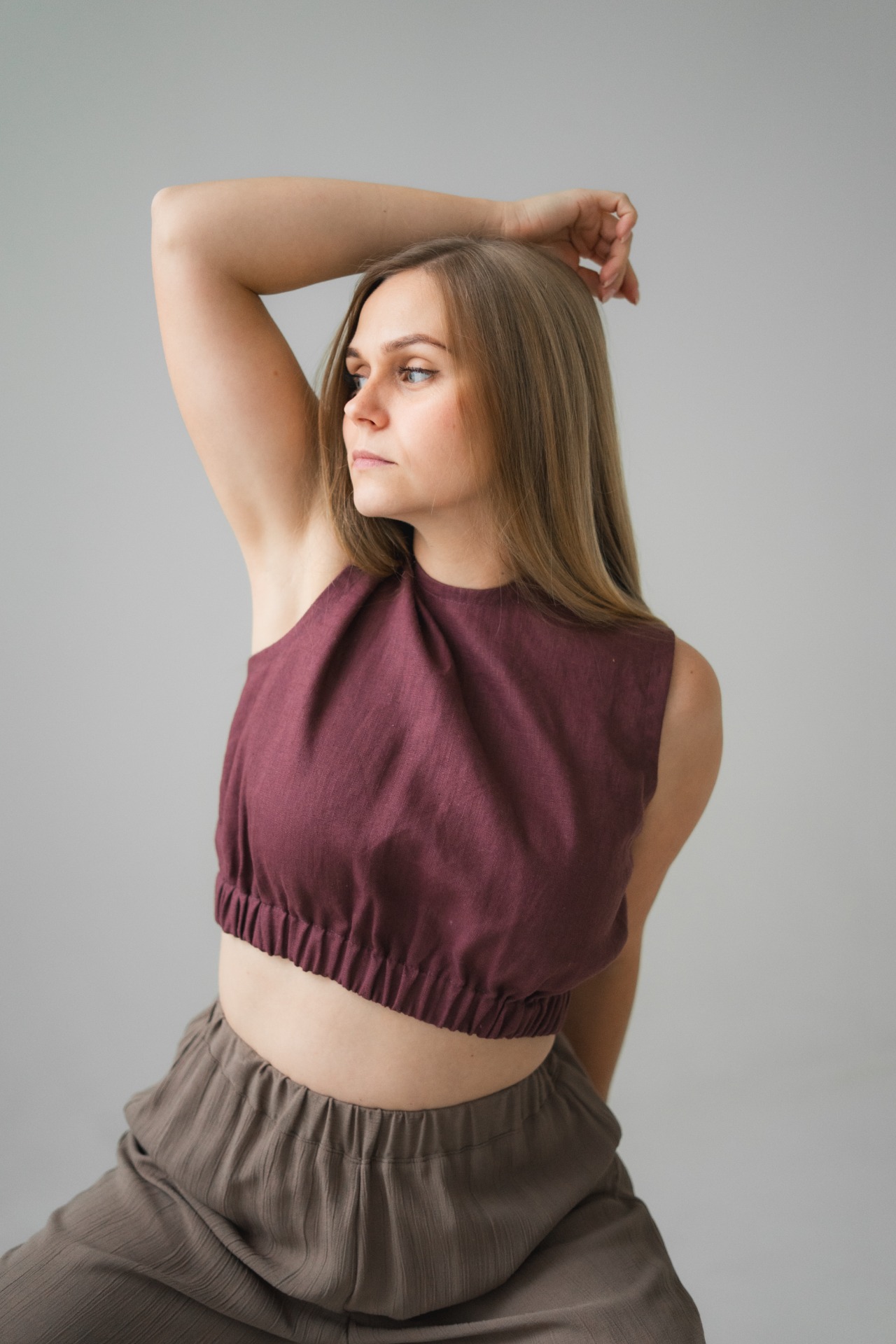Veya je minimalistický croptop, ušitý z kvalitní směsi lnu a bavlny, ideální do horkých letních dnů. Díky jednoduchému zpracování a přírodnímu materiálu se snadno kombinuje a vydrží roky.