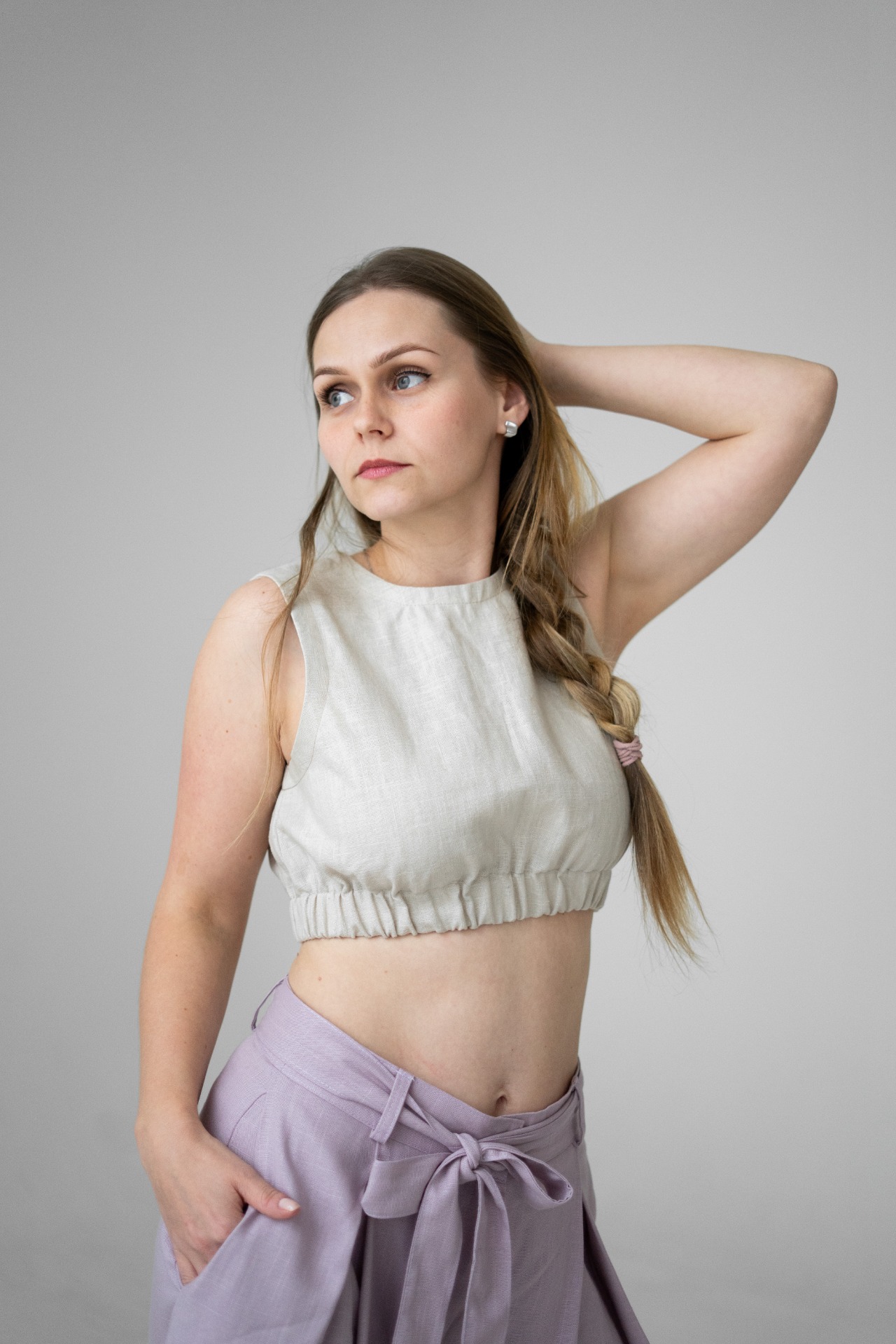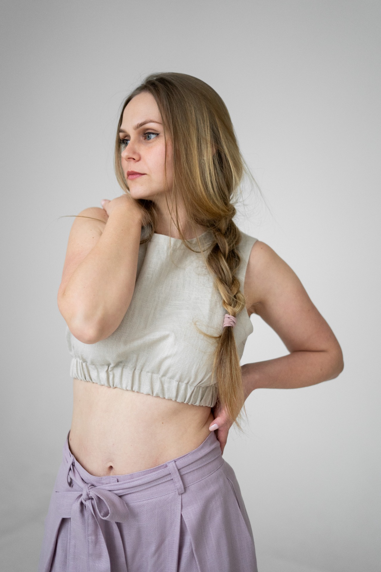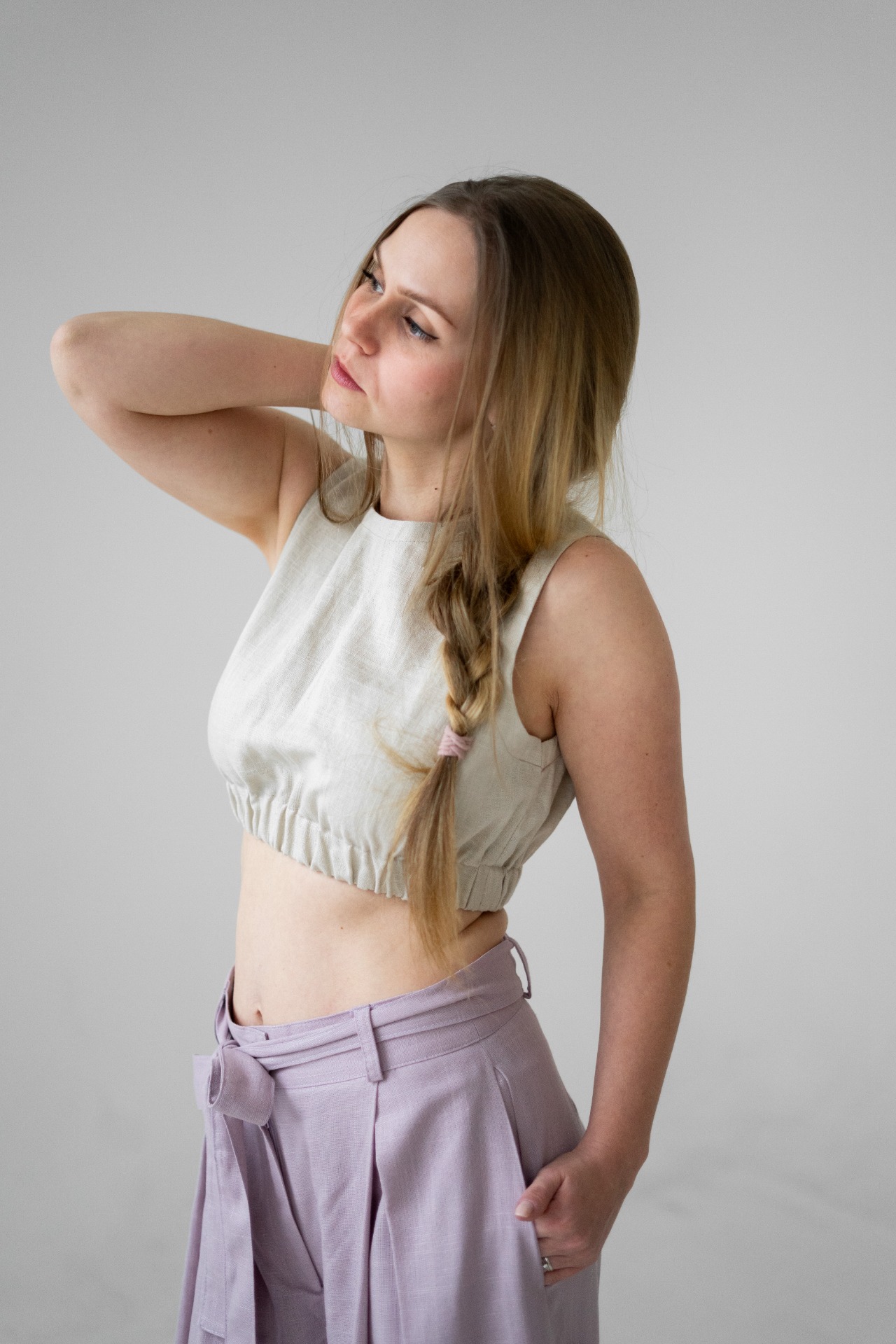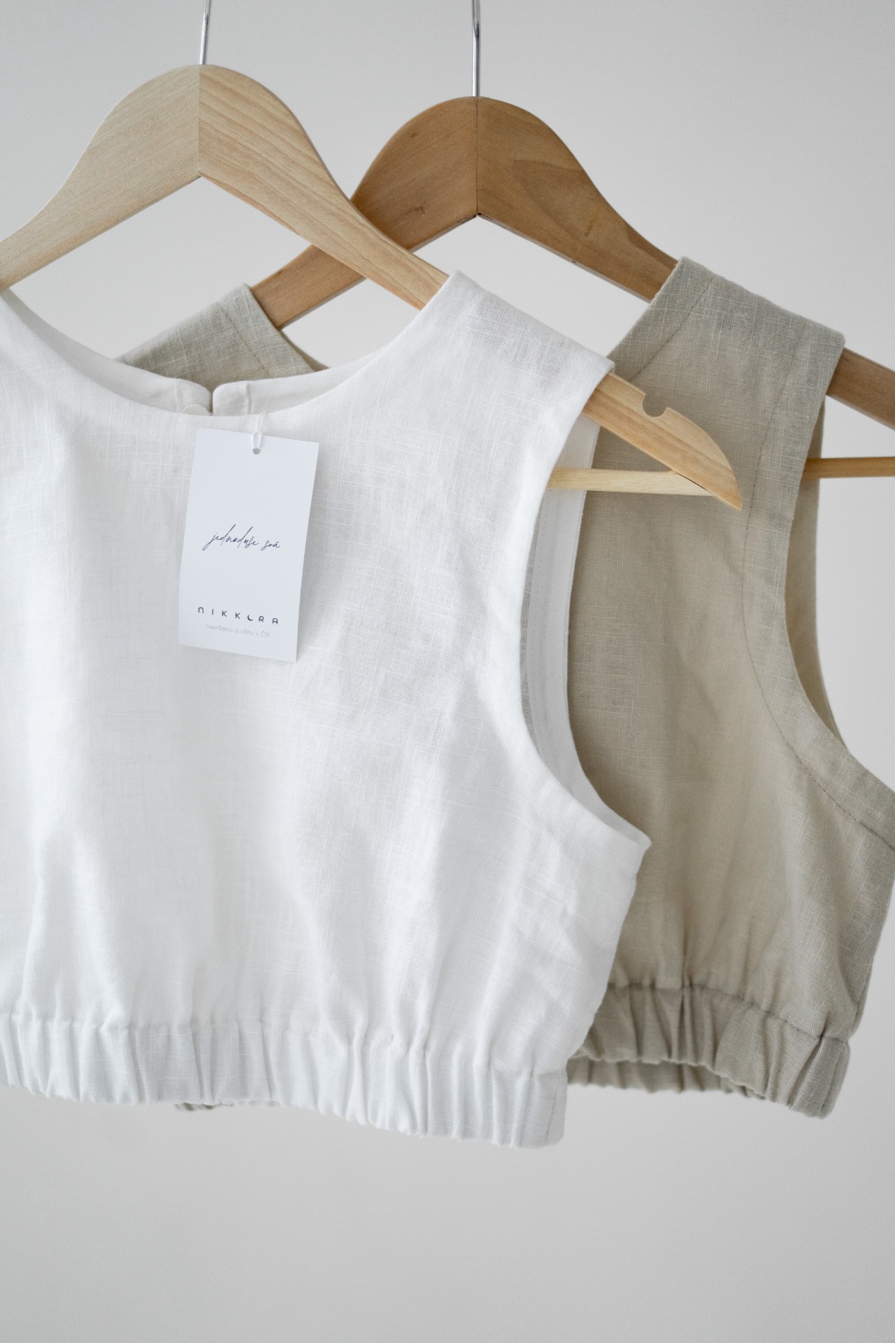 Veya je minimalistický croptop, ušitý z kvalitní směsi lnu a bavlny, ideální do horkých letních dnů. Díky jednoduchému zpracování a přírodnímu materiálu se snadno kombinuje a vydrží roky.