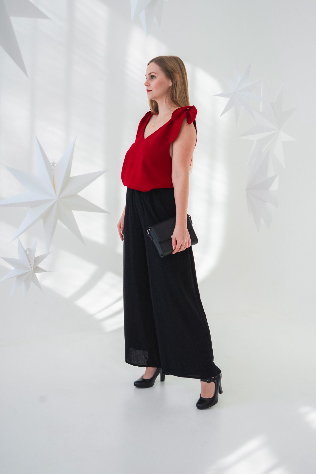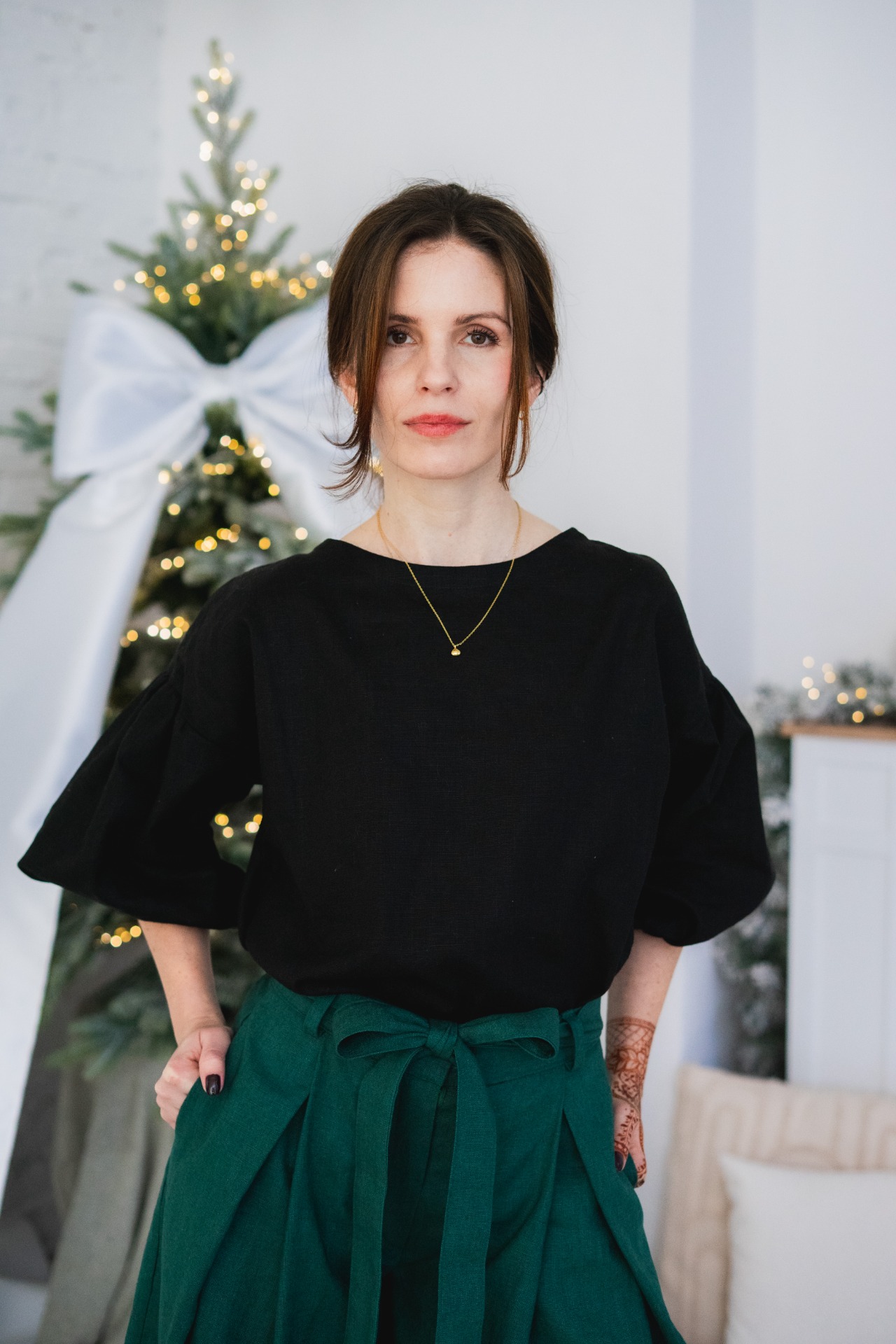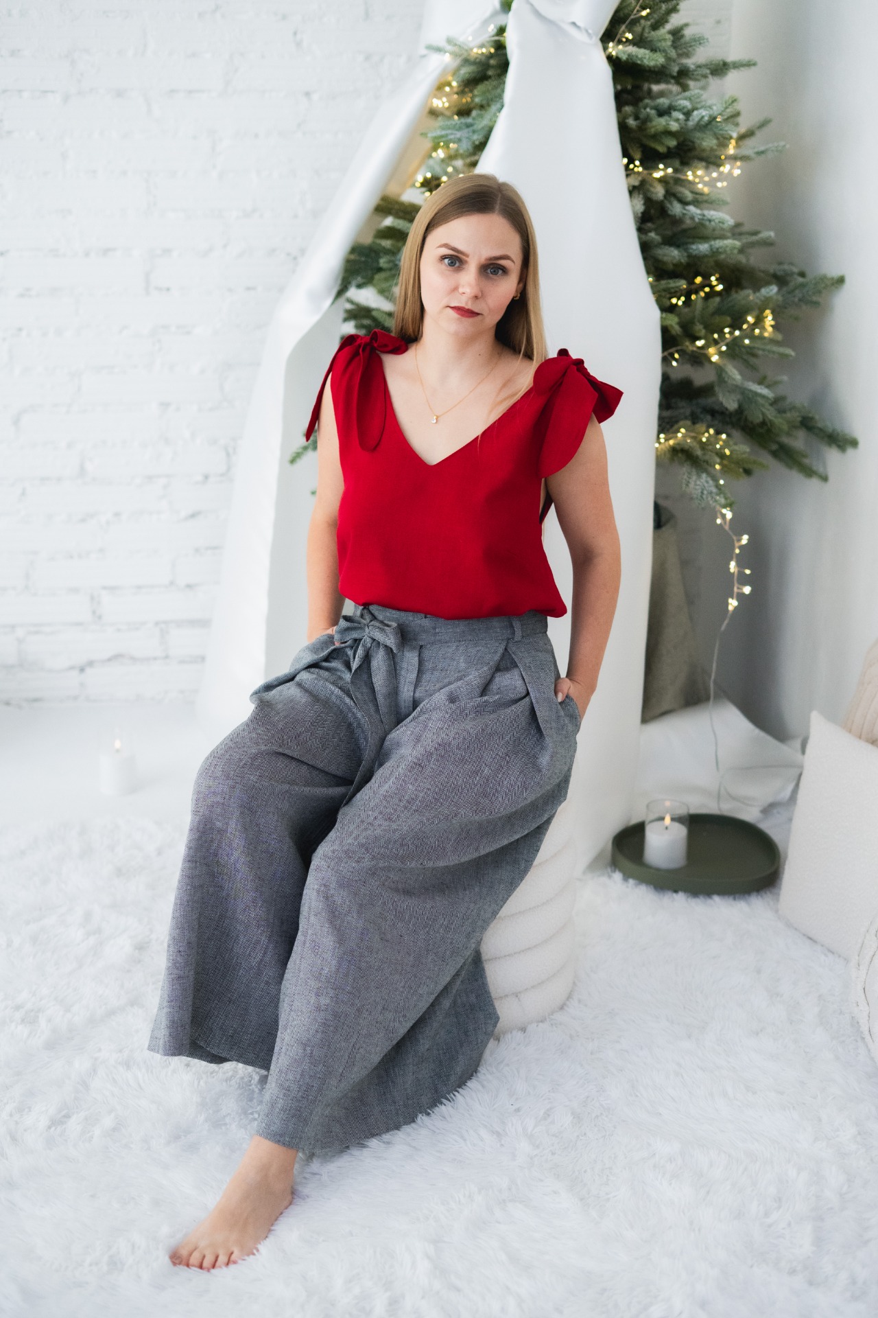 LEAH - lněný top s mašlí - christmas red
